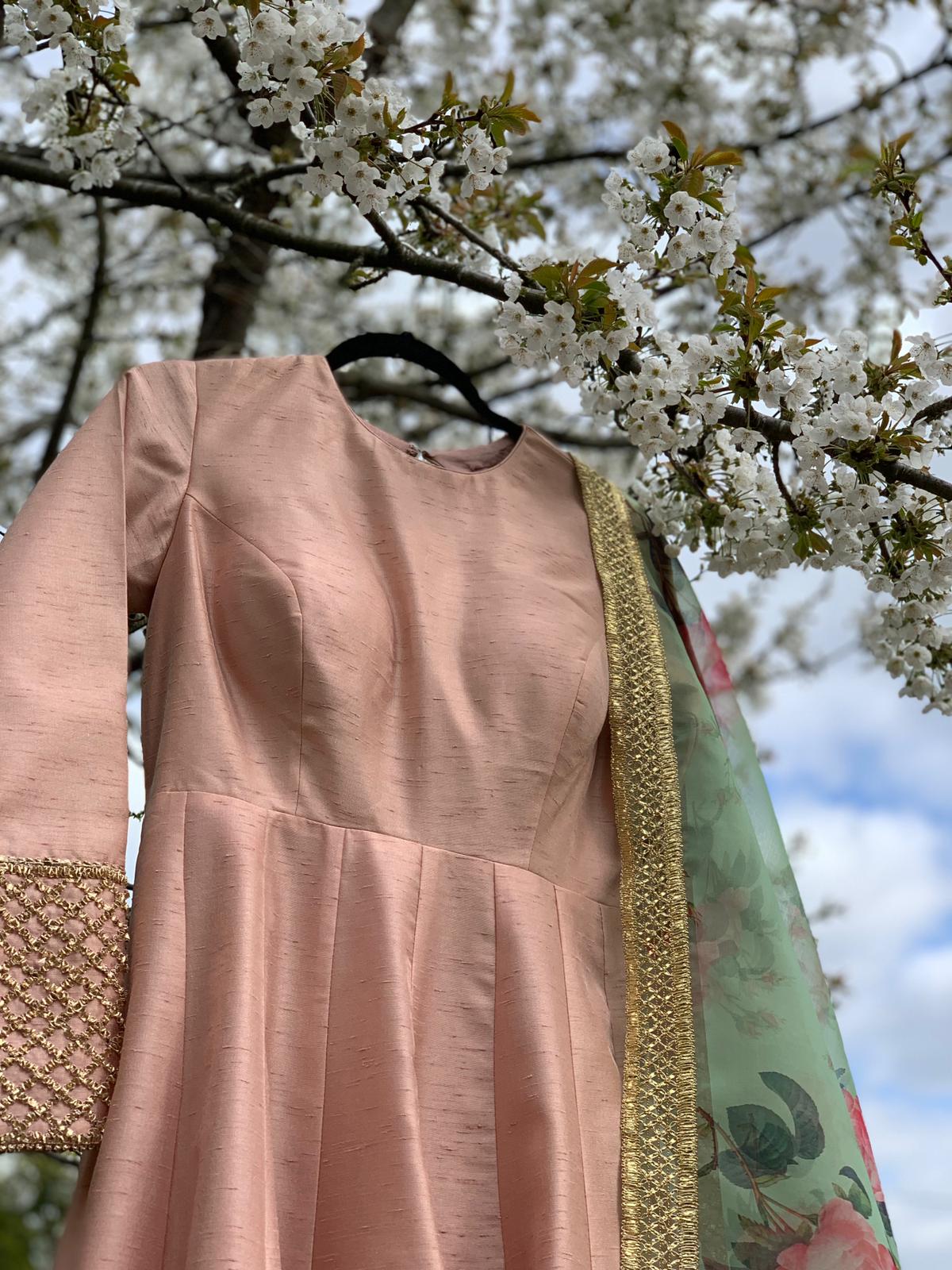 Alternatively, we offer the option to create a bespoke piece, tailored to your preferences. Following a list of carefully curated measurements, we can insure a flattering and perfect fit. The possibilities are endless as you not only have 400 colours to choose from, you also have the freedom to select your desired neckline, back shape, and almost all aspects of the anarkali, allowing you to create a truly personalized ensemble.